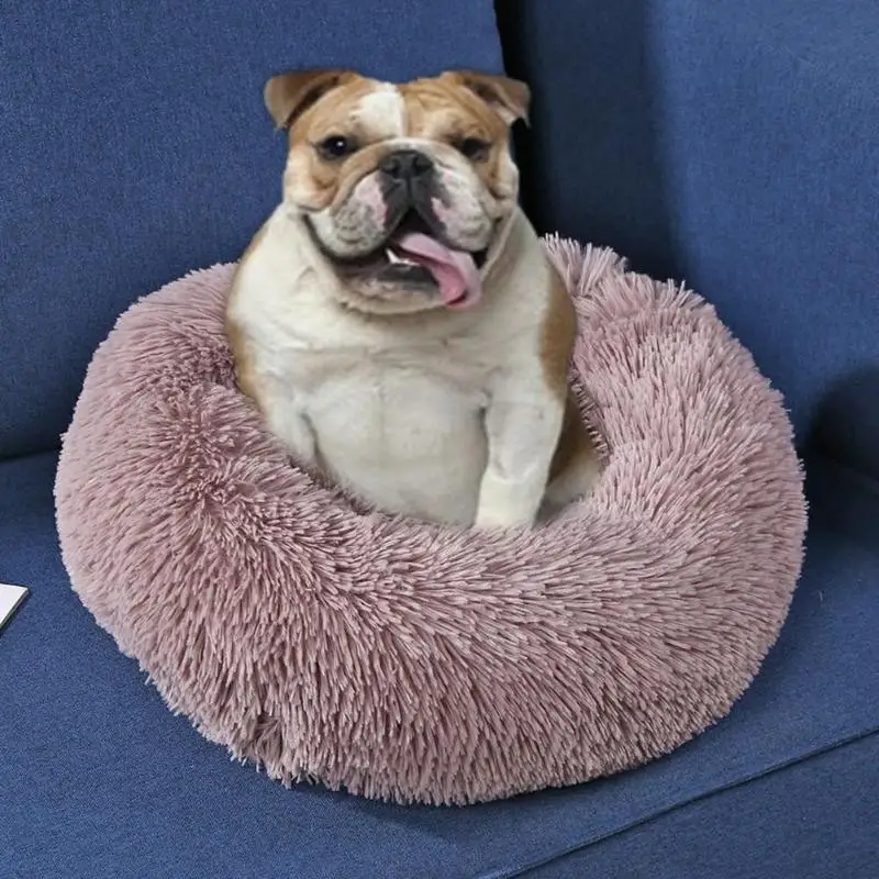 Круглая кровать для собаки моющаяся длинная плюшевая собачья Конура