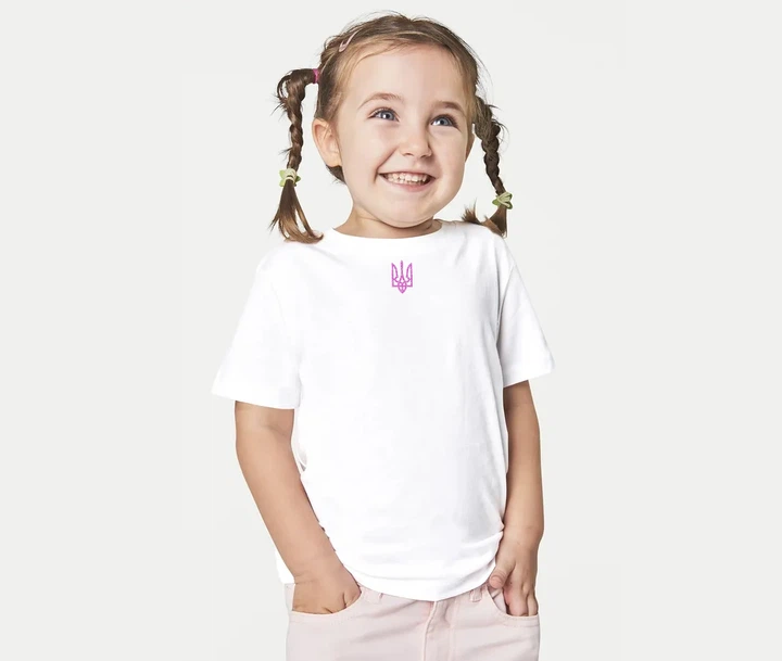 Дитяча Патріотична футболка тризуб рожевий глітер малий Герб України по