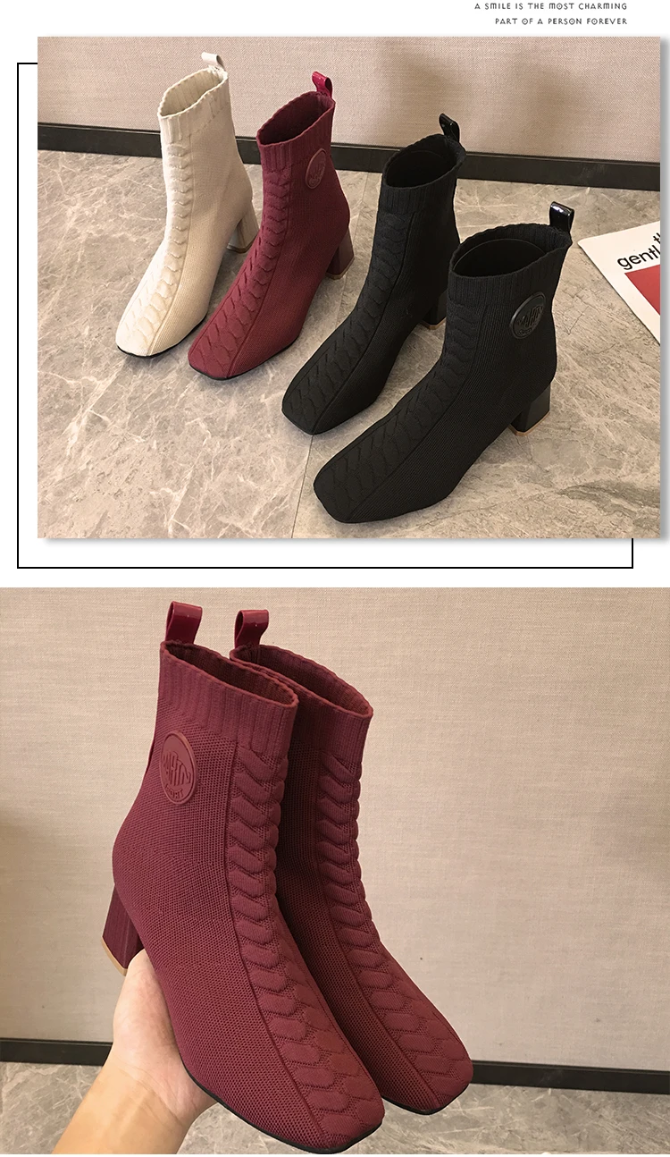 Эластичные вязаные носки с квадратным носком; ботинки на не сужающемся