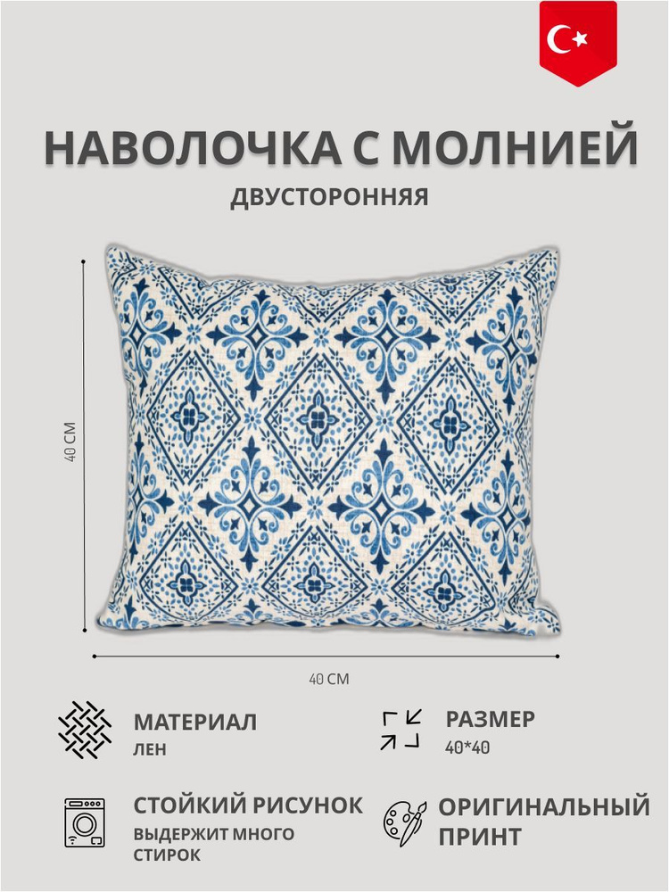 Наволочка декоративная Белая с синими узорами 40*40 для дома и дачи