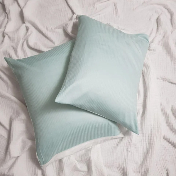 Наволочка на подушку Ментоловая с белым 50x50, Страйп-сатин, на молнии