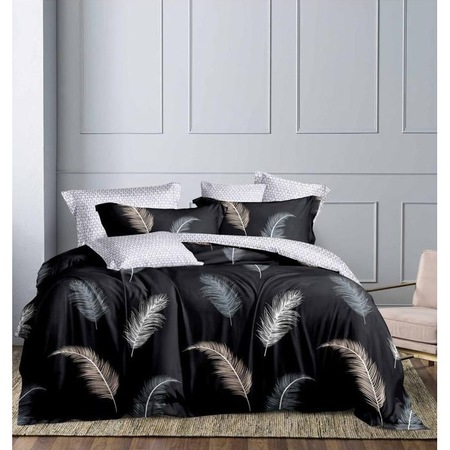 Комплект спално бельо, сатениран памук, 4 части, черен с пера, 240x250