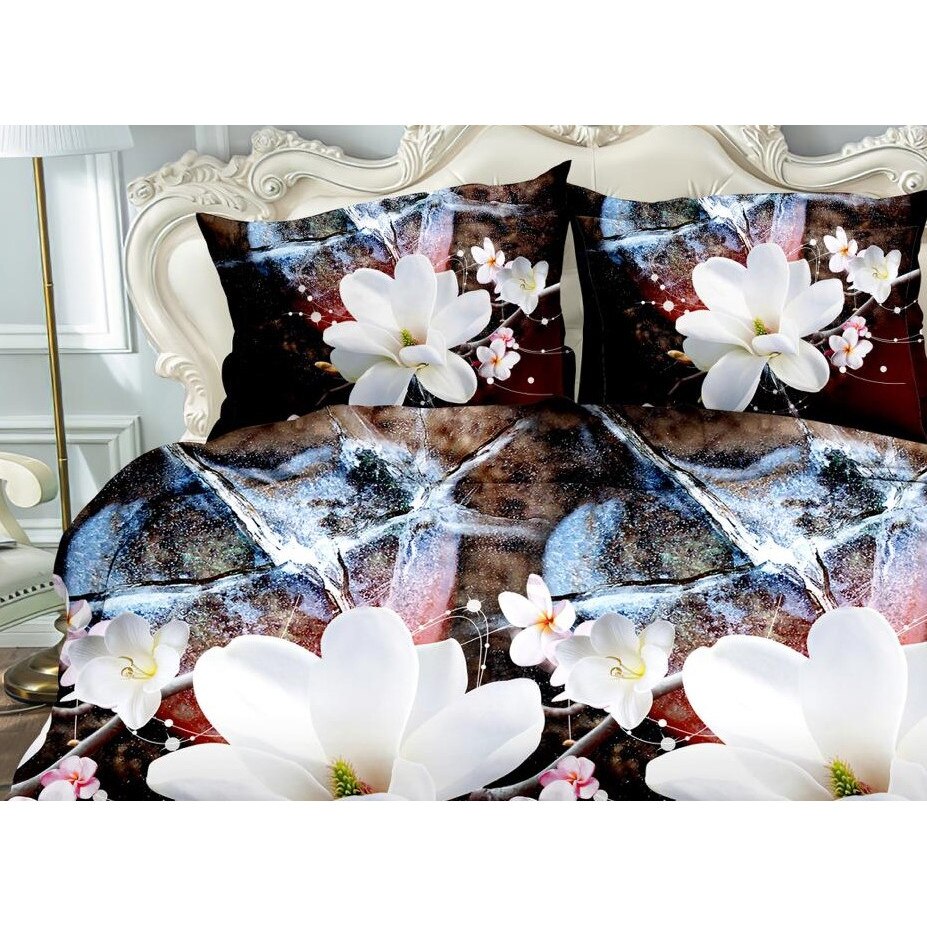 Двойно спално бельо, 3D бели цветя, 4 части, 2 лица, 220x240 см