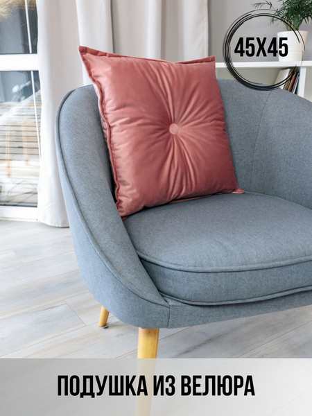 Подушка 45х45 см декоративная на диван, Вельвет 45x45