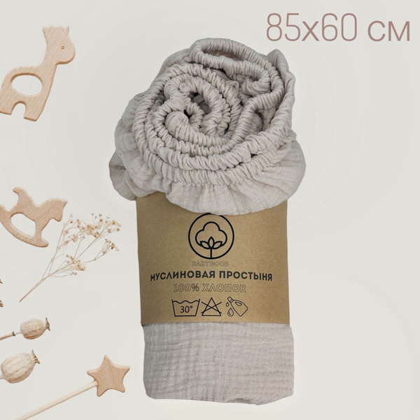 Простыня BabyGood Эко, 60x85, коричневый, белый купить по низкой цене с