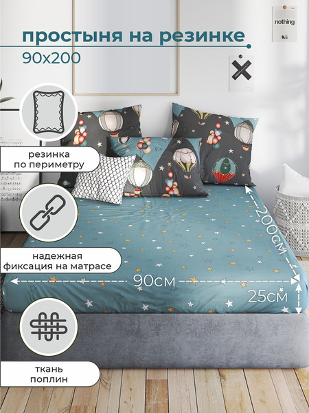 Простыня ЯФТЕКС поплин 90 на резинке, 90x200, светло-бежевый купить по