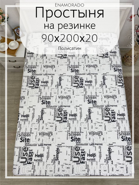 Простыня на резинке полисатин 90х200, 90x200, черный, белый купить по