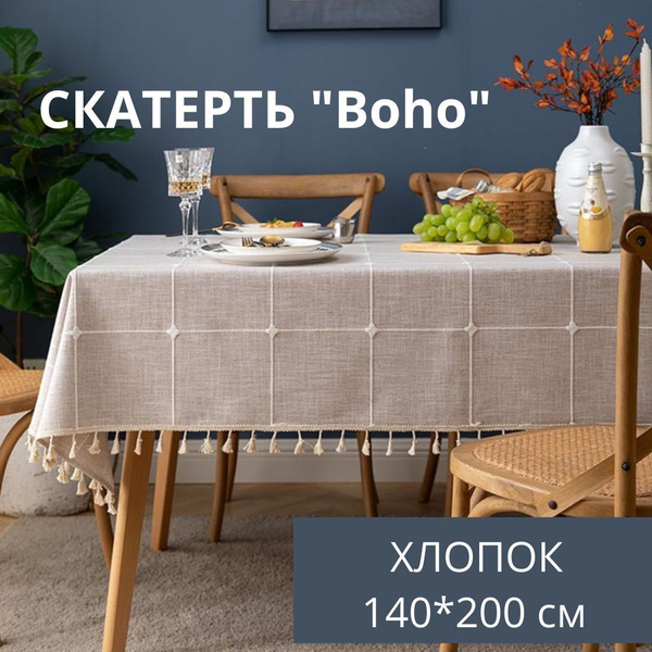 Скатерть лен на стол тканевая бежевая 140 х 200 см Бохо, Сканди